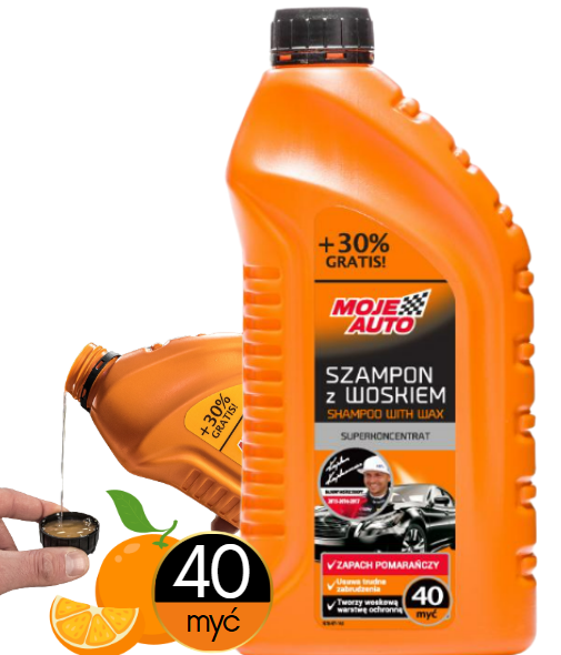 Moje Auto Szampon z Woskiem Pomarańczowy 1L – Superkoncentrat