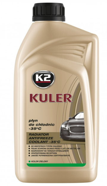 K2 KULER ZIELONY to płyn do chłodnic oparty na technologii G11, przeznaczony głównie do starszych modeli samochodów oraz pojazdów, w których zaleca się stosowanie płynów na bazie krzemianowej. Zapewnia ochronę układu chłodzenia przed korozją, osadami i przegrzaniem.