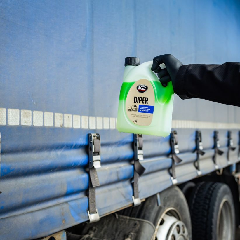 K2 DIPER to wyjątkowo silny dwuskładnikowy, alkaliczny detergent o wysokim stężeniu i właściwościach pieniących, skutecznie usuwający nawet najtrudniejsze zabrudzenia. Jego unikalna receptura została stworzona do czyszczenia pojazdów i maszyn pracujących w ciężkich warunkach, radząc sobie z brudem, wobec którego tradycyjne środki są bezsilne. Koncentrat K2 DIPER doskonale nadaje się do mycia plandek, samochodów ciężarowych oraz maszyn, usuwając nawet najbardziej uporczywy i zalegający brud.