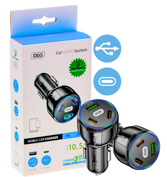 Nowoczesna i wydajna ładowarka samochodowa DLG CarLOGIC System to idealne rozwiązanie dla osób, które potrzebują szybkiego i bezpiecznego ładowania urządzeń mobilnych w podróży. Dzięki mocy 10,5A oraz obsłudze technologii Power Delivery (PD) i Quick Charge (QC) umożliwia błyskawiczne ładowanie smartfonów, tabletów i innych urządzeń.